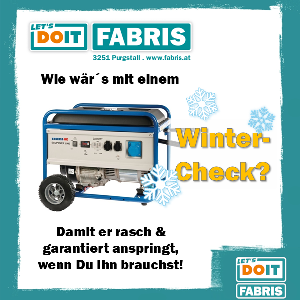 Bevor dann Ärger & Hektik ausbrechen, ist es besser, JETZT vorzusorgen - mit einem Wintercheck. Wir prüfen alle relevanten Teile Deines Aggregats, reinigen & warten dieses oder wenn notwendig tauschen einzelne Teile aus, damit das große Ganze gut funktioniert.