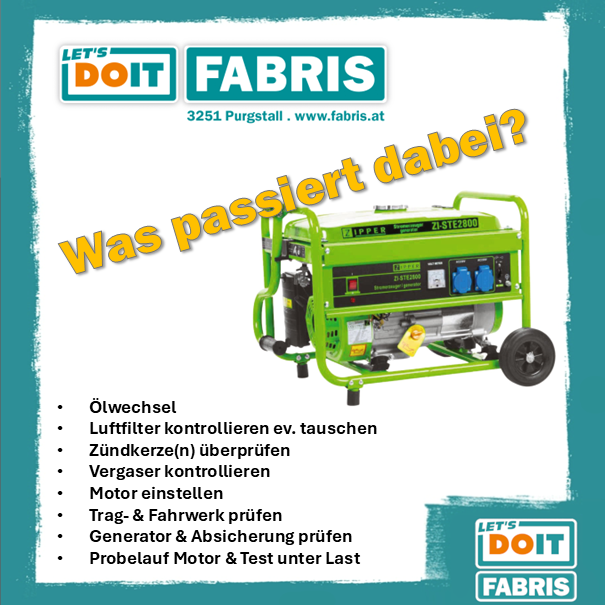 Dir passt das gerade zeitlich gar nicht rein? Dann ruf uns an & lass´ uns Deinen Stromerzeuger einfach abholen & zurückbringen. Auch das kannst Du unter angeführten Kontaktdaten gerne anmelden.