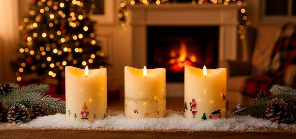 LED Kerze ca. 9x12,5cm mit Weihnachtsmotive