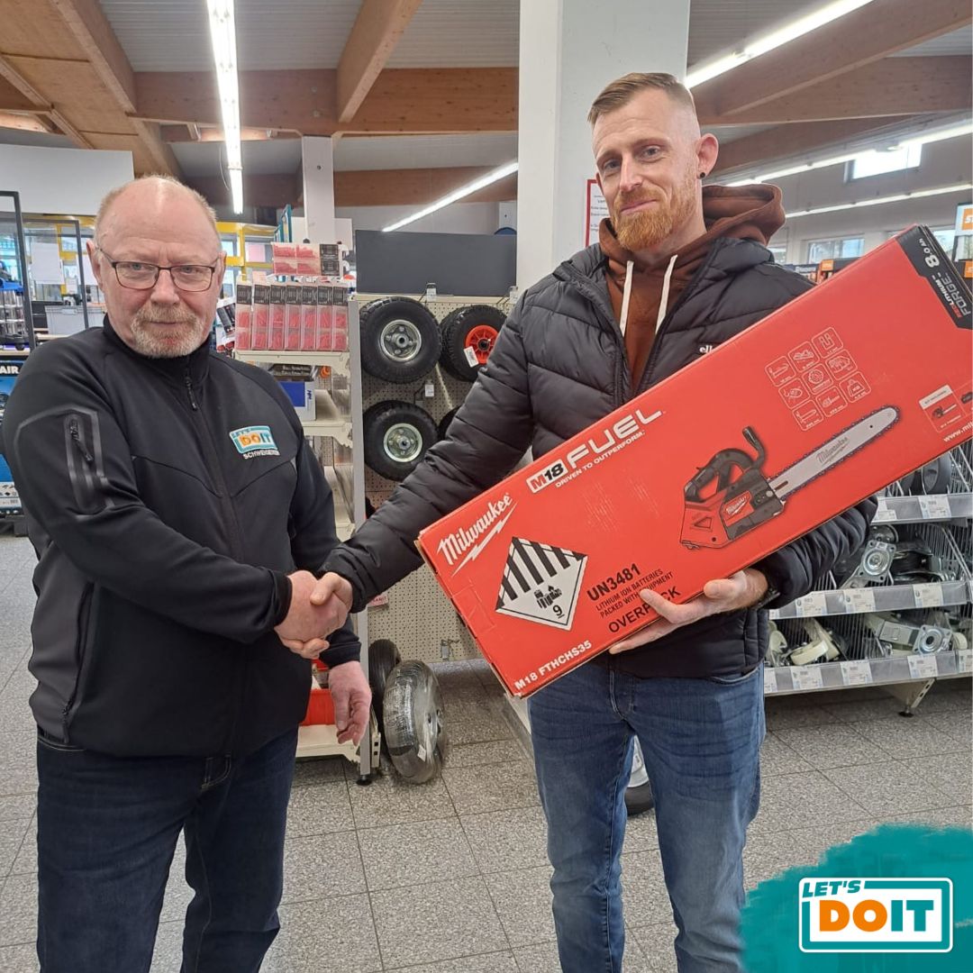 Franz hat unser LET’S DOIT Gewinnspiel gewonnen. Er freut sich über eine Milwaukee Akku-Kettensäge M18 Top Handle – perfekt für schnelle Sägearbeiten rund ums Grundstück. Gratulation und viel Freude damit. (Januar 2026)
